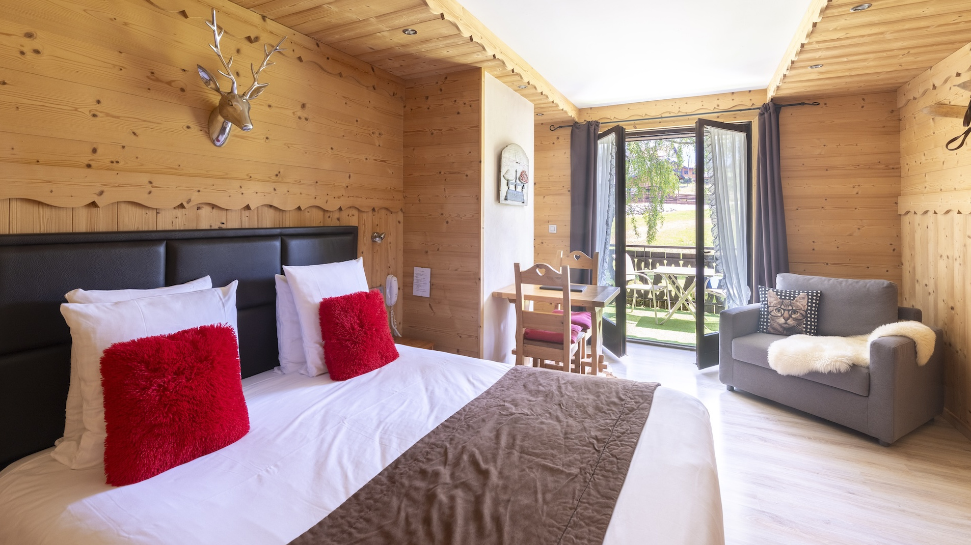 Certaines chambres disposent d’un balcon ou d’une terrasse privative, parfait pour profiter du soleil et admirer les paysages. Les chambres sans balcon offrent une vue imprenable sur notre domaine privé, nos jardins avec arbres centenaires, le lac de montagne de la Beunaz et les montagnes environnantes.